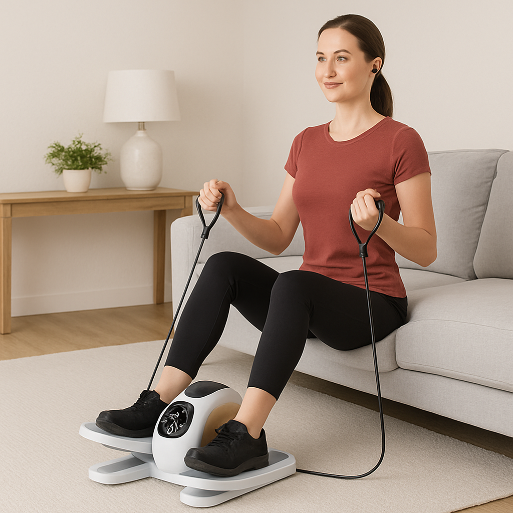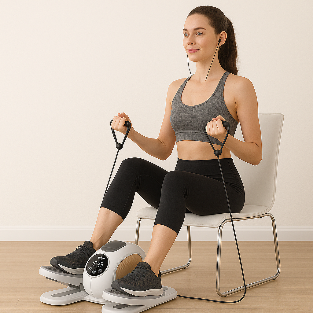 Der Mini-Trainer ermöglicht sanfte Übungen im Sitzen, ideal für ältere Menschen oder zur Erholung. Verbessern Sie Ihre Fitness und fördern Sie die Durchblutung mühelos.